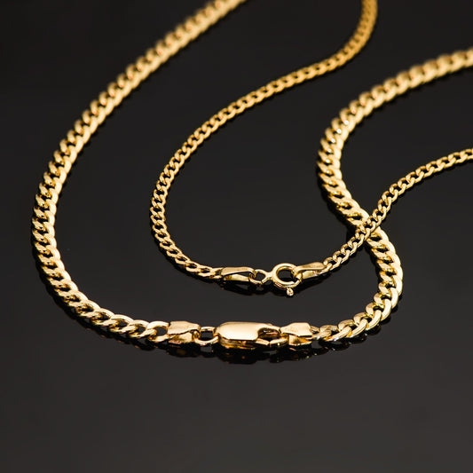 18K CADENA ORO AMARILLO BARBADA MACIZA LARGO 50 CM ANCHO 1.5 MM