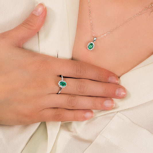 18K SORTIJA ORO BLANCO ESMERALDA 0.39 QTS. DIAMANTES 0.14 QTS. SI-H