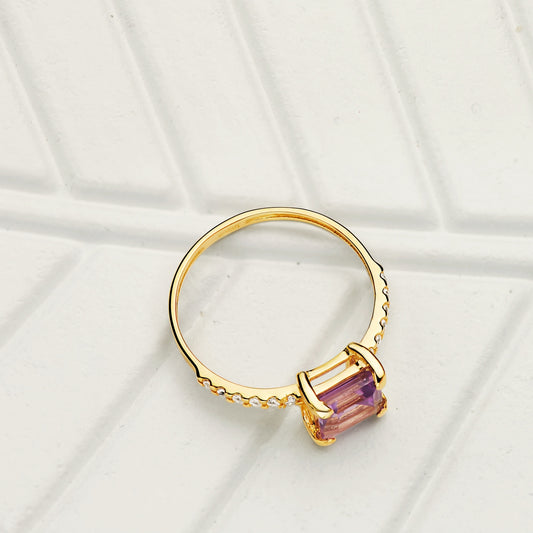 18K SORTIJA ORO AMARILLO CIRCONITAS Y AMATISTA 6X6 MM ANCHO CUERPO 1.5 MM