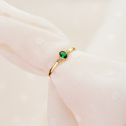 18K SORTIJA ORO AMARILLO PIEDRA VERDE Y CIRCONITAS 4X3 MM ANCHO CUERPO 1.2 MM