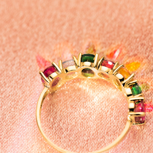 18K SORTIJA ORO AMARILLO CARRIL 6 MM SIETE GARRAS PIEDRAS DE COLORES