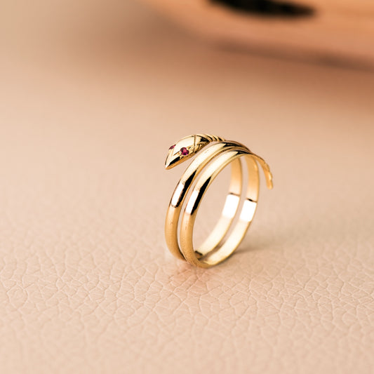 18K SORTIJA ORO AMARILLO SERPIENTE 2 VUELTAS CON OJOS ROJOS
