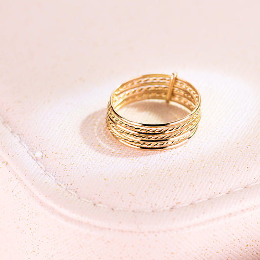 18K SORTIJA SEMANARIO HILOS LISOS Y TRENZADO