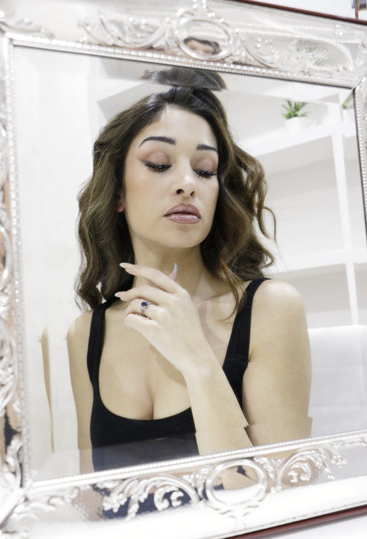 ANILLO DE ORO BLANCO AMATISTA 8 MM 18K