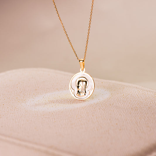 18K MEDALLA SILUETA VIRGEN MARIA DE LA O 22X15 MM TALLADA