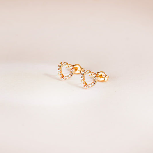 18K PENDIENTES ORO AMARILLO CORAZON CON CIRCONITAS 5 X 5 MM CIERRE TUERCA