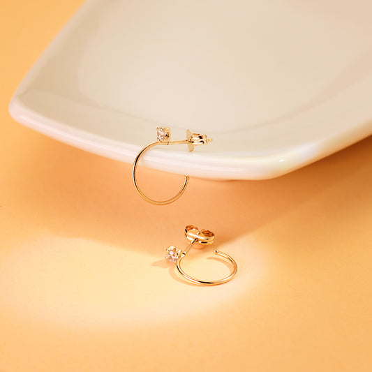 18K PENDIENTES ORO AMARILLO AROS ABIERTOS HILO FINO 0,5MM CON CIRCONITAS 14 MM. CIERRE PRESION